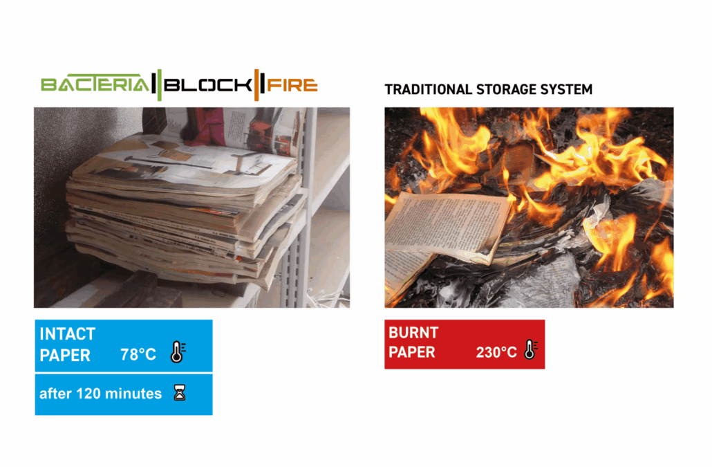 BacteriaBlockfire guarantees combined protection against biological deterioration and fire, thus ensuring a complete defense of the preserved assets.